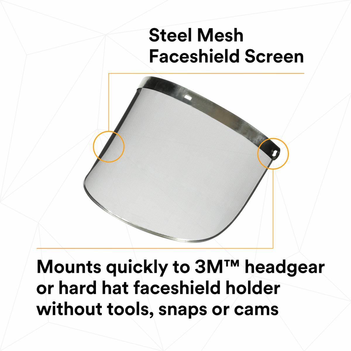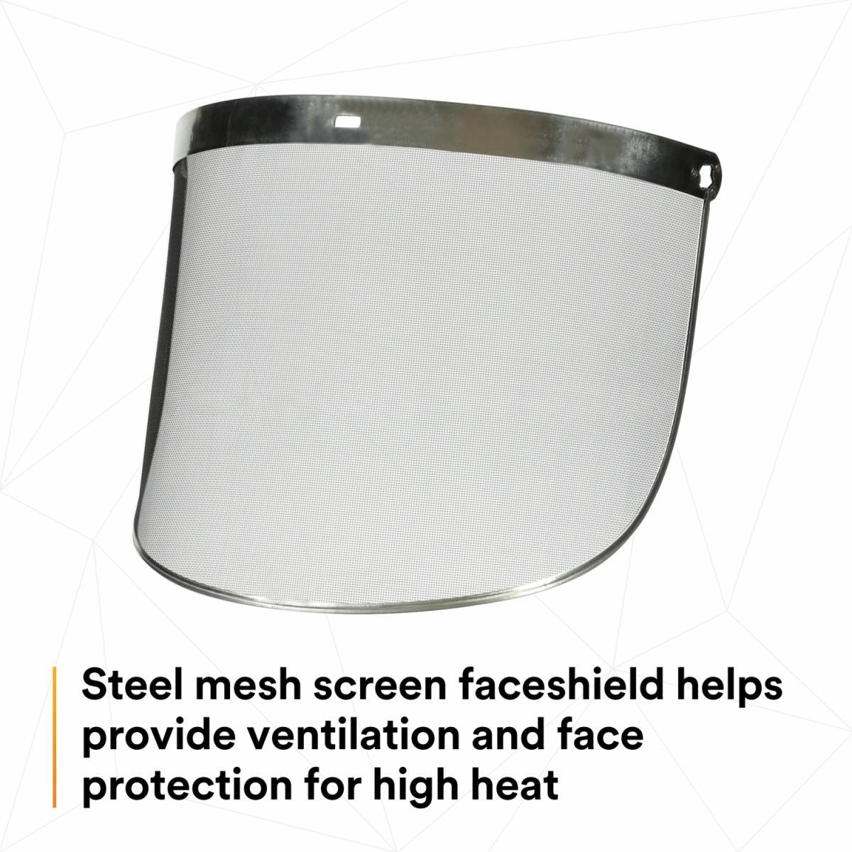 3M™ 7000127168 Faceshield, For Use With 3M Headgear Systems, Clear Visor, Steel Mesh Visor, 9 in H 14.5 in W, ANSI Z87.1