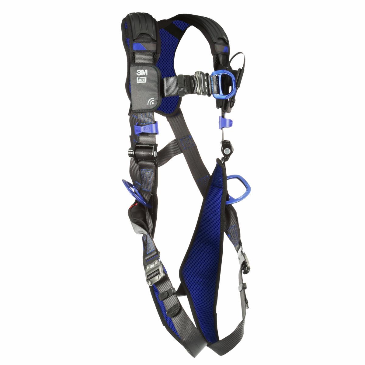 The 3M™ DBI-SALA® ExoFit™ X300 is designed for those who refuse to compromise. The X300 harnesses are outfitted with high-quality components that have been developed to enhance the safety, convenience and performance for working at height on your job site. The X300 comfort harness is built with 6,000lb polyester webbing, robust nylon/polyester hybrid comfort padding with reflective 3M Scotchlite™ panels, and lightweight aluminum hardware. New technology in the Dorsal D-ring area helps workers make efficient connections and maintain a safe harness fit. Locking torso adjustment and quick-connect buckle options are available to optimize fit and worker experience. Select configurations are also available with exclusive weight distribution system to help reduce shoulder strain and fatigue.