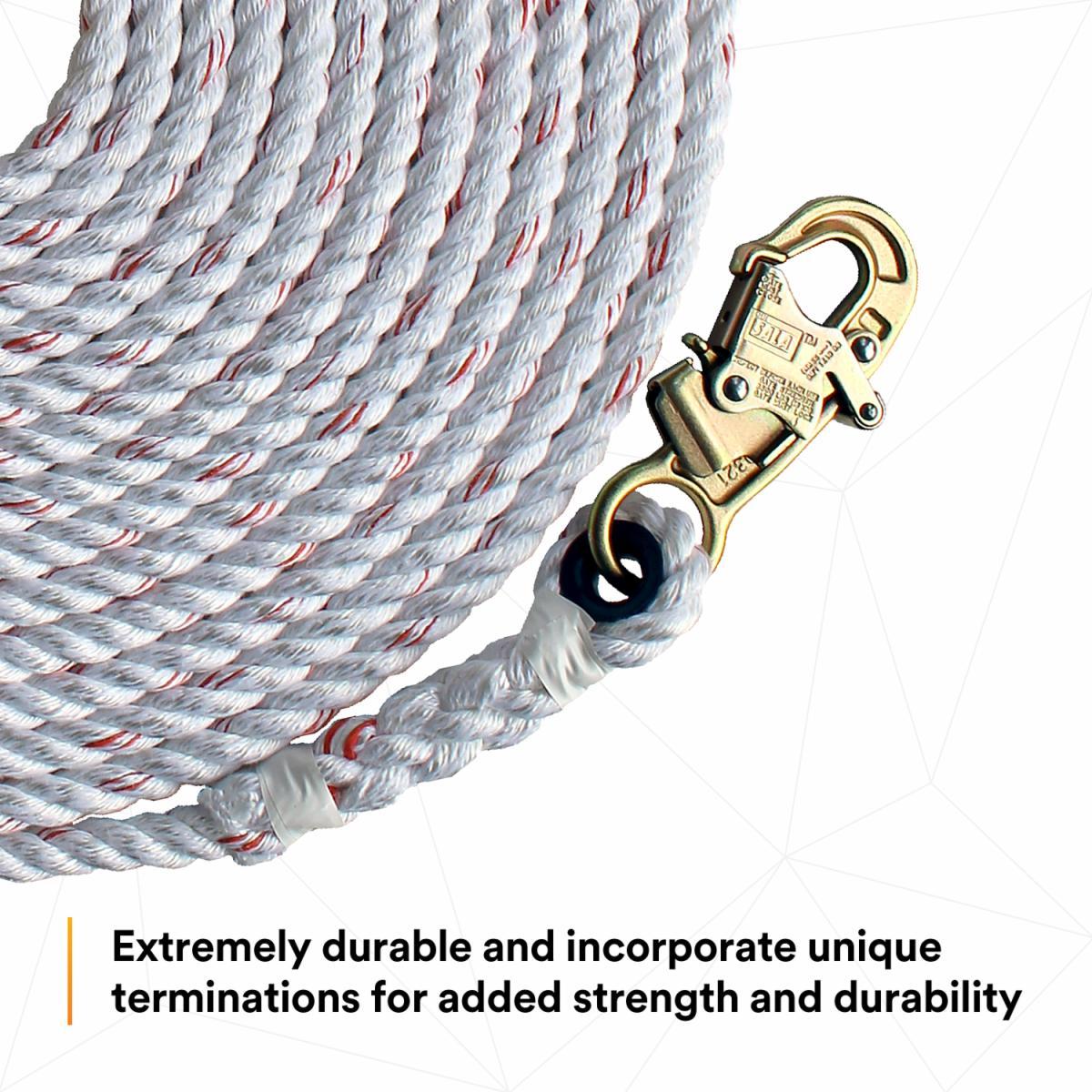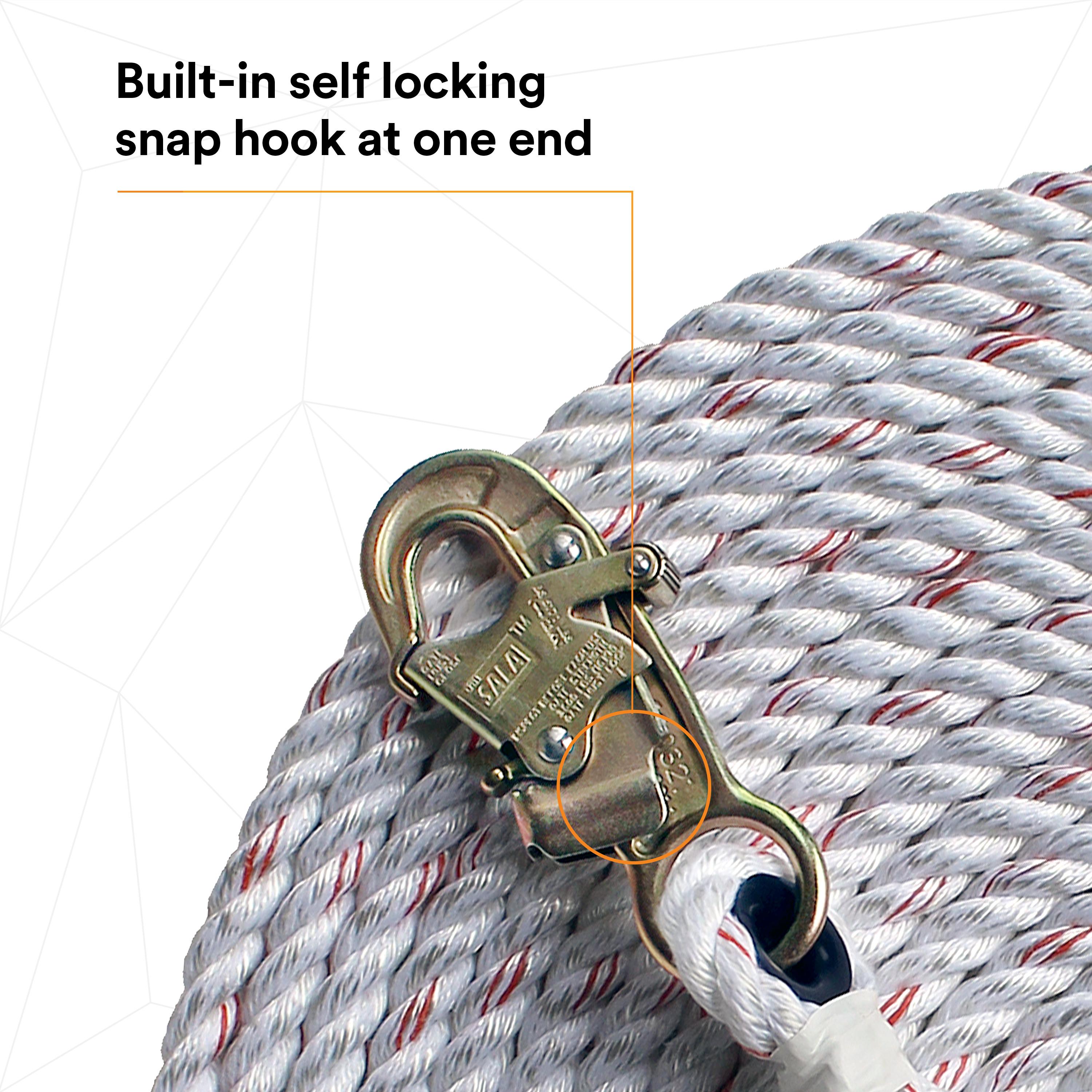 3M™ DBI-SALA® 7100204288 1202742 Rope Lifeline with Snap Hook, 310 lb Load, 25 ft L, ANSI A10.32, ANSI Z359.1, OSHA 1910.66, OSHA 1926.502