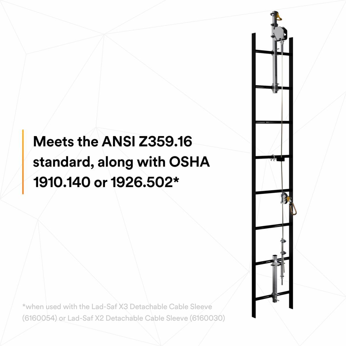 Adding or upgrading your vertical safety systems just got easier. The new generation of 3M™ DBI-SALA® Lad-Saf™ Cable Vertical Safety System are re-engineered to simplify and speed up the installation process. With up to 72% fewer loose components* than some of our previous models, these lightweight systems are streamlined for easy installation and maintenance on a variety of structures - such as fixed ladders and telecommunication towers. They have also been designed to meet the requirements of the ANSI Z359.16 standard when used with our Lad-Saf X2 or X3 sleeve, helping you to stay in compliance with the current fall protection standards.