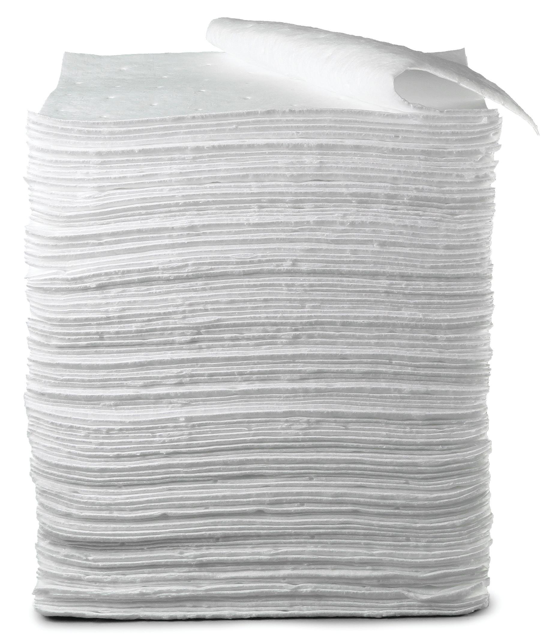 High capacity petroleum sorbents have a scrim on one side to increase strength and help eliminate linting. Conveniently sized pads allow the user to quickly spread sorbent over and in the path of a spill.