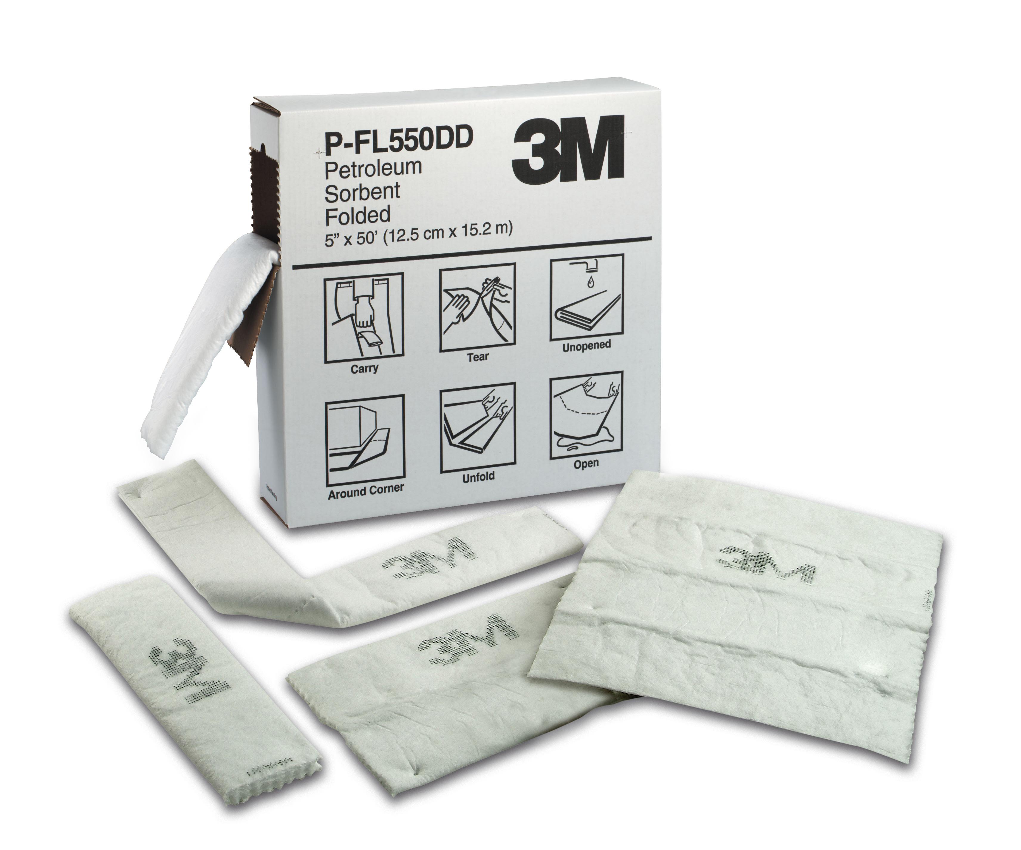 3M™ 7000002025 Folded Sorbent, 50 ft L x 5 in W, 31.5 gal Absorption, Polyester/Polyethylene