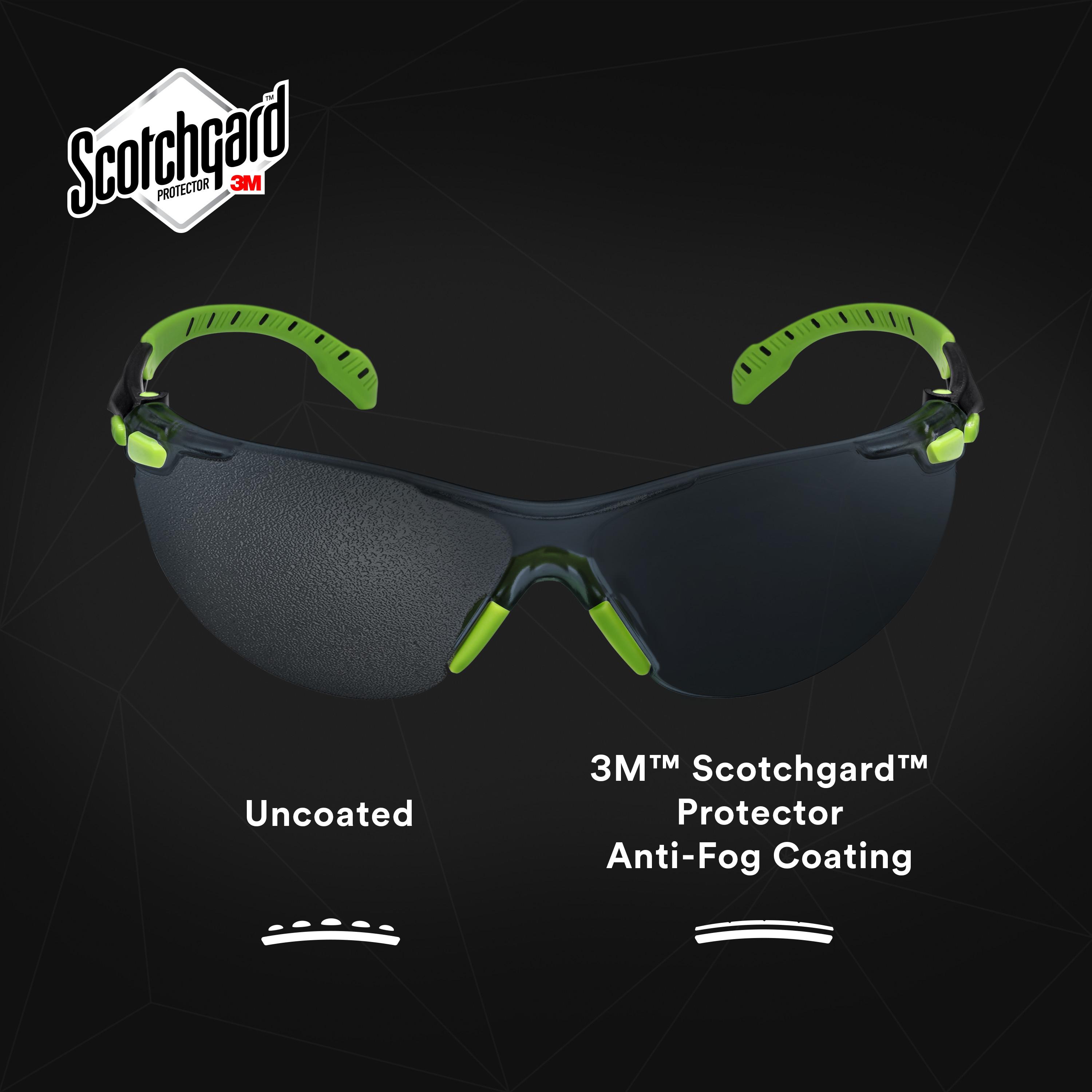 3M™ Solus™ 1000 series protective eyewear features Scotchgard™ anti-fog lens coating which helps workers see clearly, longer providing longer lasting fog resistance than traditional anti-fog coatings. Removable temples enable the use of the optional strap. Optional foam gasket heps reduce eye exposure. Available in several frame colors and lens tints. The 3M™ Solus™ 1000 series safety glasses feature a low-profile, black and green, gray lens frame and clear lenses with Scotchgard™ anti-fog coating. 3M™ Scotchgard™ anti-fog technology brings higher anti-fog performance to safety eyewear helping workers see more clearly to complete on-the-job tasks. Other features include removable padded temples and a soft nose bridge for added comfort. All 3M™ Solus™ series safety eyewear come with polycarbonate lenses, which absorb 99% of UV rays. The 3M™ Solus™ 1000 series safety glasses feature a low-profile, black and green, gray lens frame and clear lenses with Scotchgard™ anti-fog coating. 3M™ Scotchgard™ anti-fog technology brings higher anti-fog performance to safety eyewear helping workers see more clearly to complete on the job tasks. Other features include removable padded temples and a soft nose bridge for added comfort. All 3M™ Solus™ series safety eyewear come with polycarbonate lenses, which absorb 99% of UV rays.