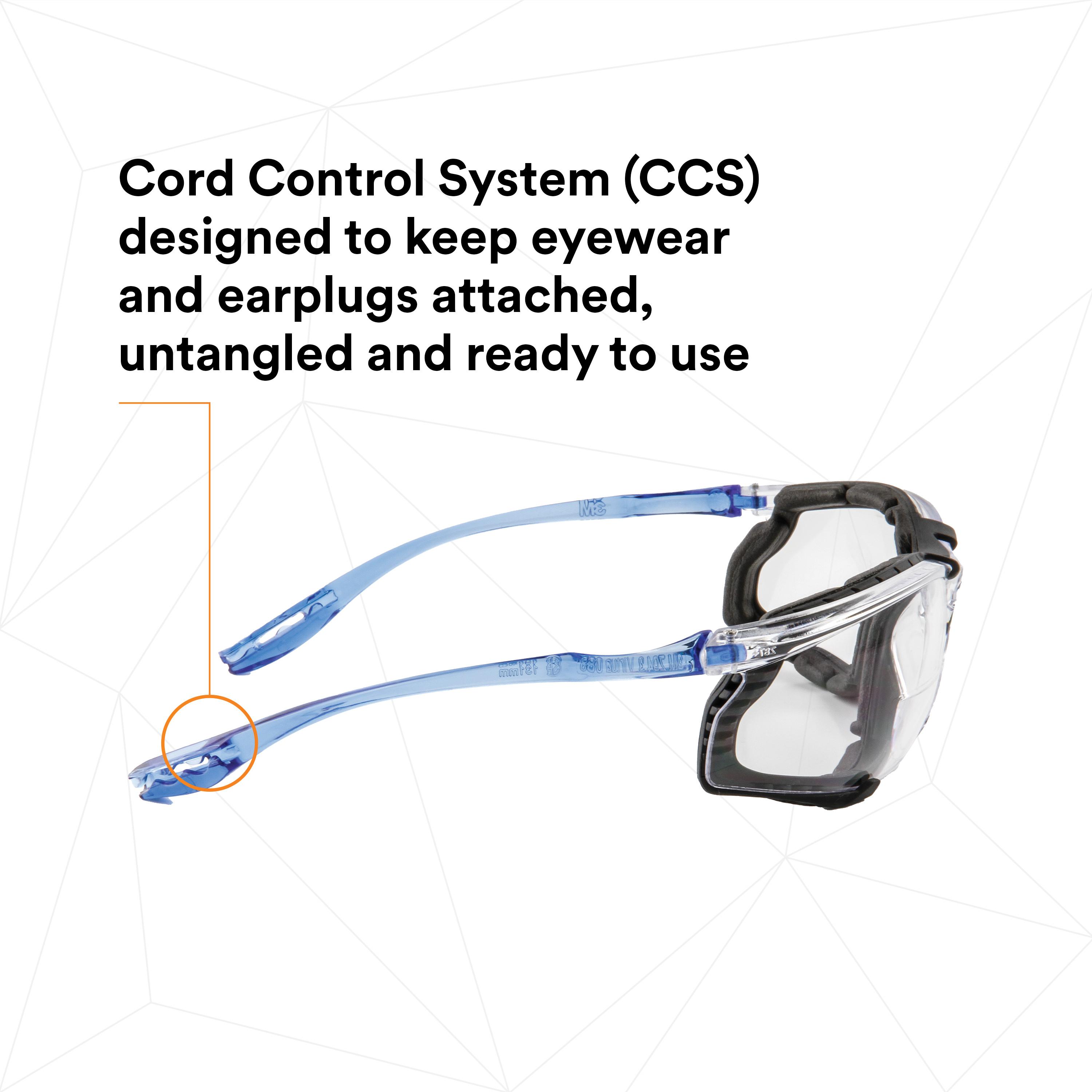 3M™, 7100046672, Eyewear, Premium, Anti-Fog/Anti-Scratch Lens Coating, Clear Lens, Half-Frame, Blue Frame, Plastic Frame, Polycarbonate Lens, Yes UV Protection, Cord Control System Temple, Specifications Met: ANSI Z87.1-2015/CSA Z94.3