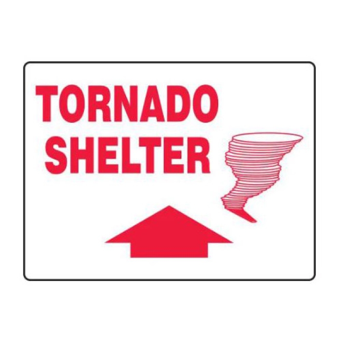 The Accuform Tornado Shelter Sign features a large arrow that effectively guides individuals to safety during a tornado. This sign is designed with a tornado graphic that can be easily comprehended by non-English speakers. The use of adhesive vinyl ensures that it stays in place, while the non-glare surface and moisture-resistant properties guarantee visibility and durability even in adverse weather conditions.
