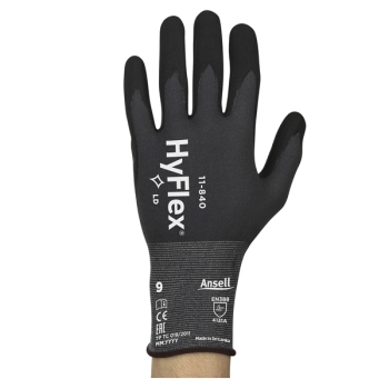 HyFlex® General Purpose Work Gloves, Light Duty Multi-Purpose, Series: 11-840, Industrial/Food Glove, SZ 9 Size, Foam Nitrile Palm, Nylon/Spandex®, Black/Gray, Knitted Style, Nylon/Spandex® Lining, Knit Wrist Cuff, Foam Nitrile Coating, Palm Coating Coverage, 8 to 11 in Length, Resists: Abrasion, Contact Heat, Cut, Dry, Puncture and Tear
