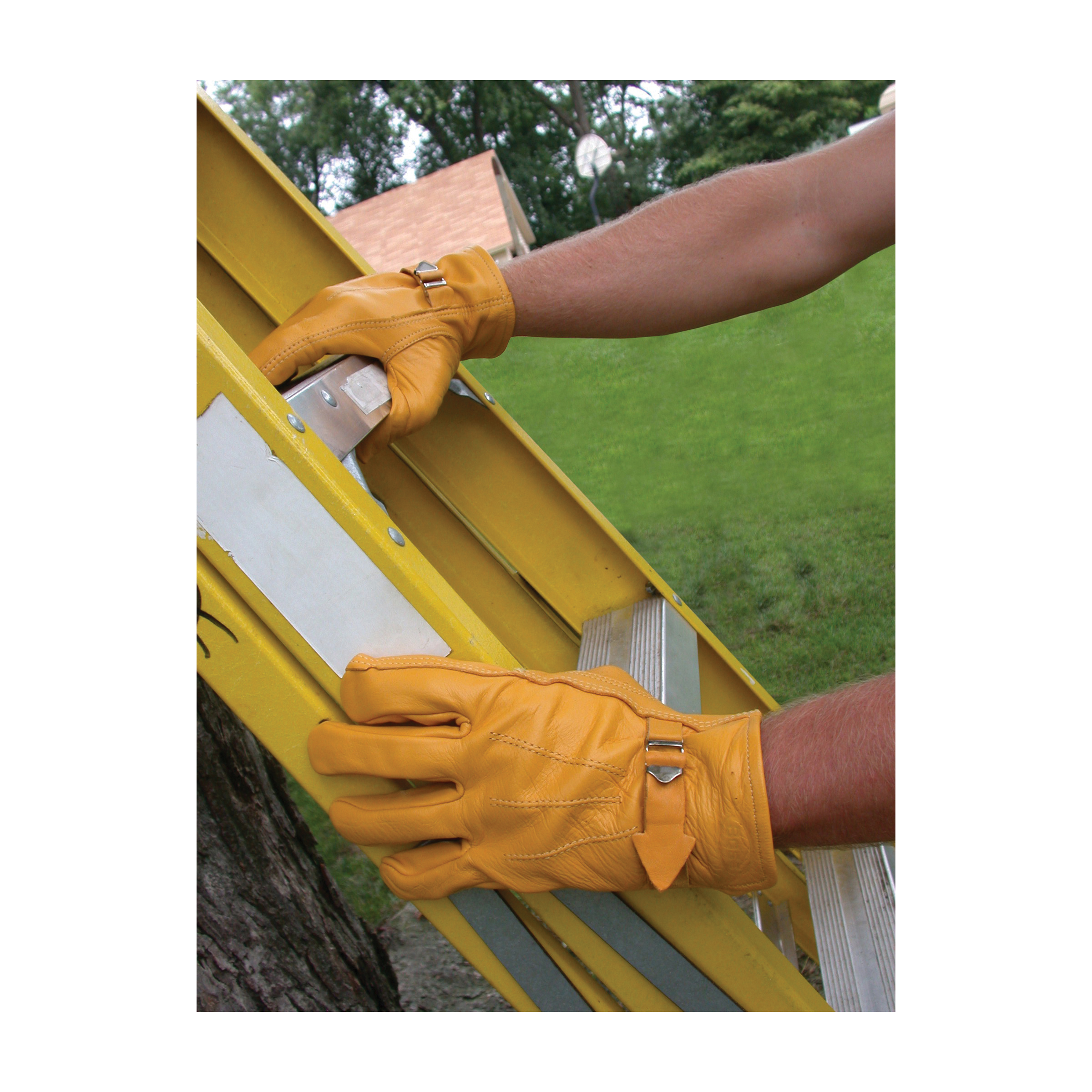 Boss® Work Gloves, Series: 6023, Driver's Glove, L Size, Premium Grain Cowhide Leather Palm, Premium Grain Cowhide Leather, Gold, Double Stitched Index Finger/Keystone Thumb/Self-Hemmed Style, Unlined Lining, Open Cuff, Adjustable Buckle Strap Closure