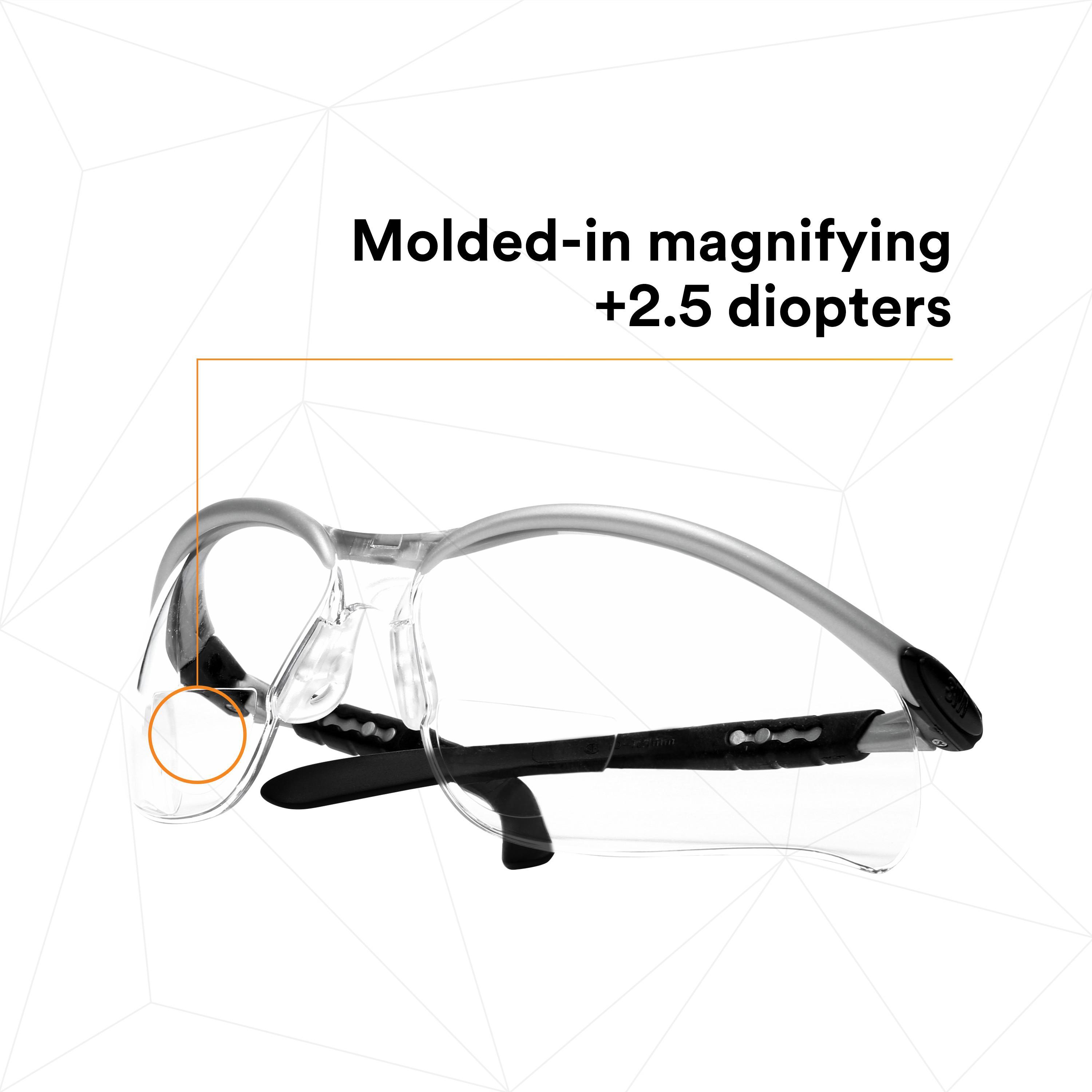 Sleek, contoured and fully adjustable protective eyewear, 3M™ BX™ features a soft adjustable nose bridge, lens angle adjustment, and adjustable length temples for extended wear.