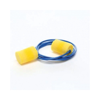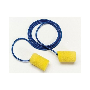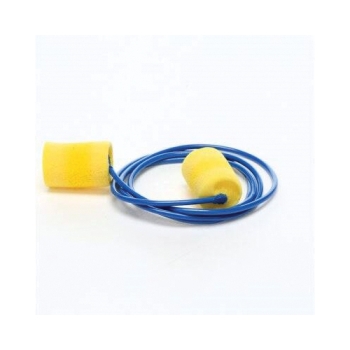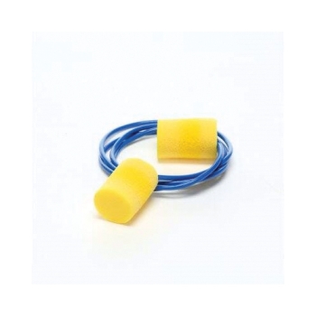 E-A-R™ Classic™ Earplug, Flame/Moisture-Resistant Roll Down, Corded Design, 29 dB Noise Reduction, Cylinder Shape, Regular Size, Yellow Plug, Foam Plug, Blue Cord, Vinyl Cord, Specifications Met: ANSI S3.19-1974, CSA Class AL, Disposable/Reusable: Disposable