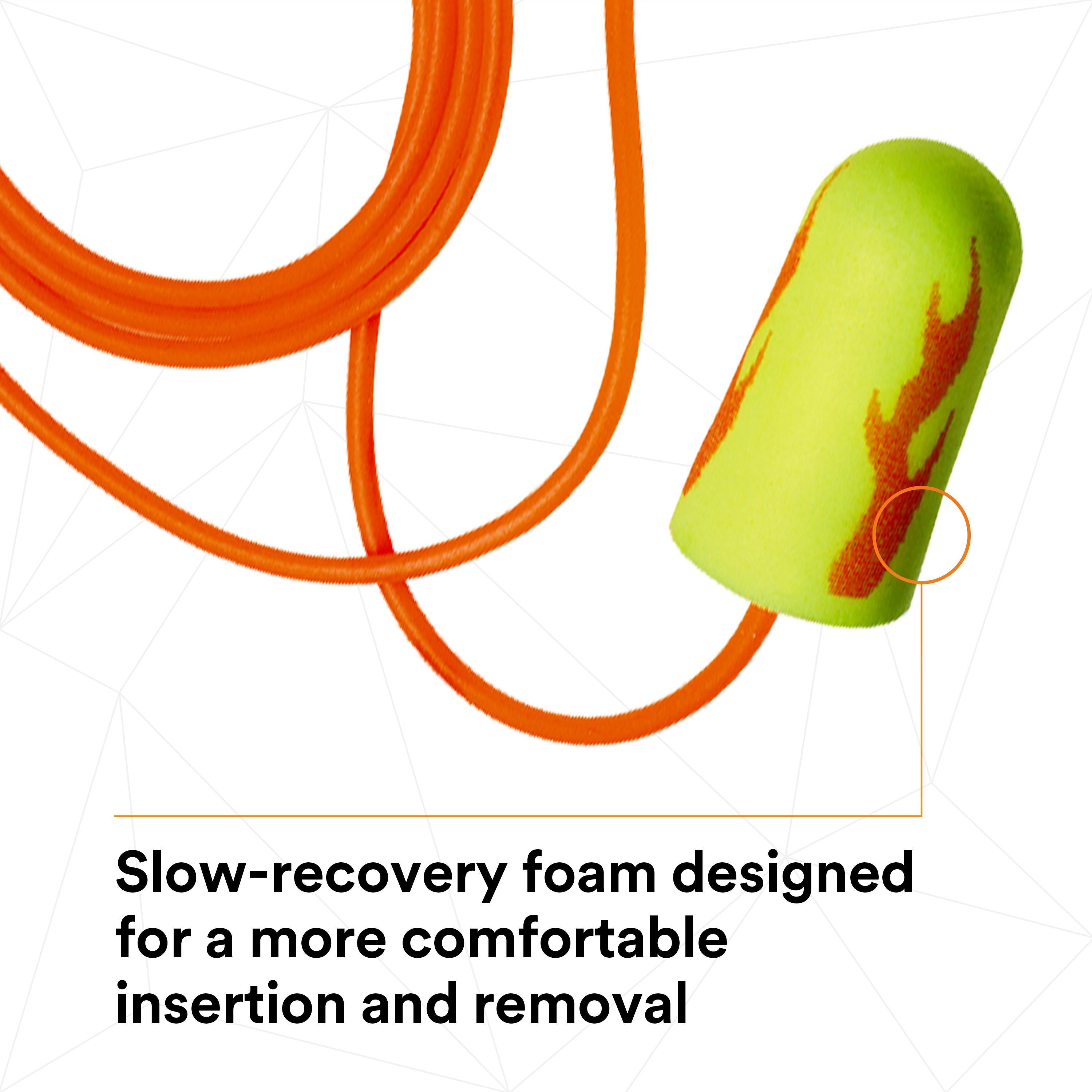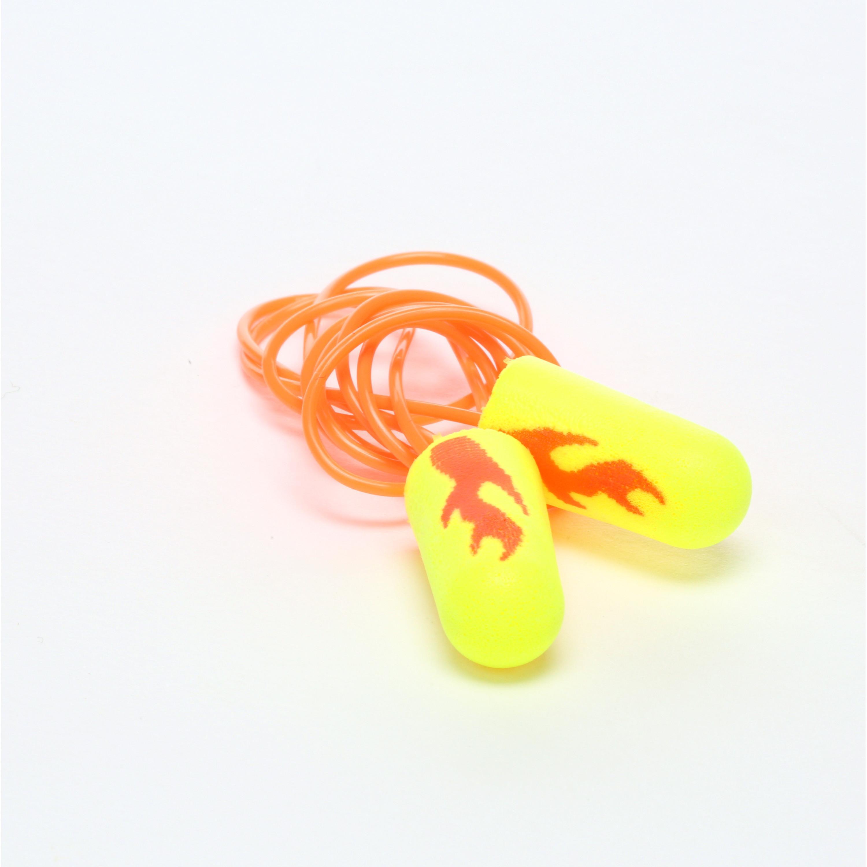 3M™ E-A-Rsoft™ Yellow Neon Blasts™ Earplugs seal the ear canal with soft, slow-recovery foam to help reduce noise and improve comfort. An orange-red flame and orange cord add some fun to serious hearing protection.