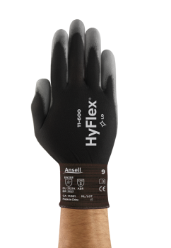 HyFlex® 11-600-11 Light Duty General Purpose Gloves, Industrial, 2XL/SZ 11, Polyurethane Palm, Nylon/Polyurethane, Black, Knit Wrist Cuff, Polyurethane Coating, Resists: Abrasion, Cut, Puncture and Tear, Nylon Lining
