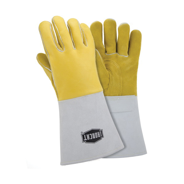 Ironcat® 9060/XL Welding Gloves, XL, Premium Grain Top Grain Elkskin Leather/Kevlar® Thread, Yellow, Cotton/Foam Lining, Gauntlet Cuff, 14 in L