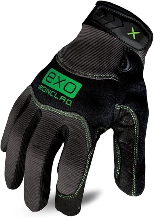 ironClad®, EXO-MWR-05-XL, Mechanical Gloves, Series: EXO™, XL Size, Water Repellant Synthetic Leather Palm, Polyester/Spandex/Neoprene, Black/Grey, Left/Right Hand, Mechanic's Style, Terry Cloth Lining, Hook and Loop Cuff, 9 in Length, ANSI Puncture-Resistance Level: 1