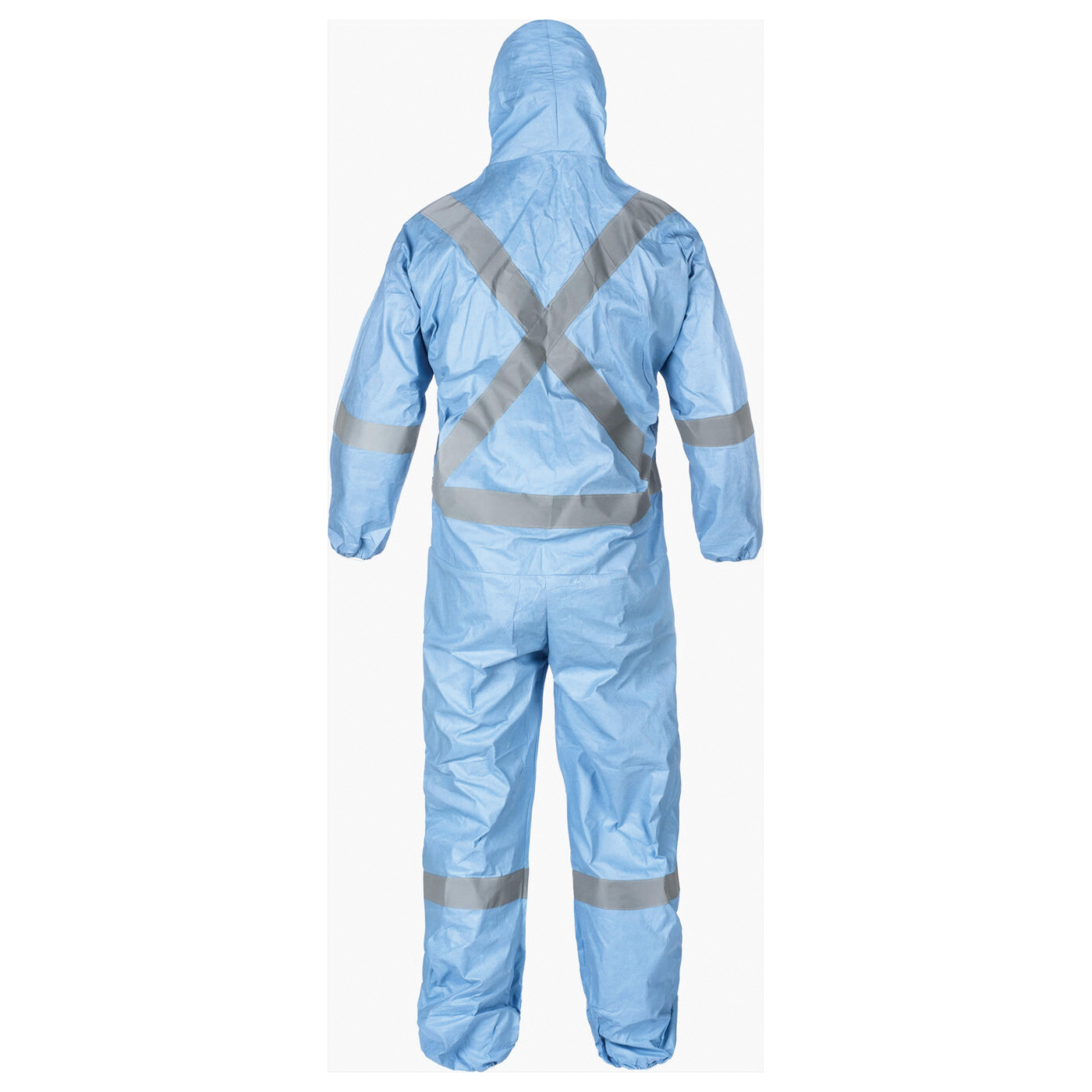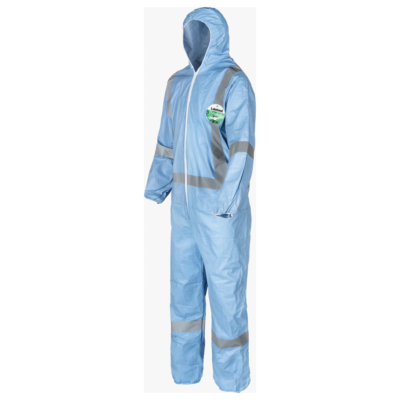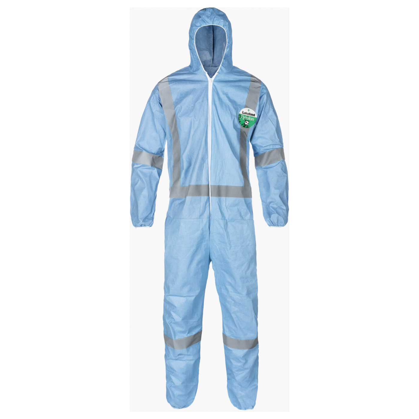 Lakeland® Pyrolon® Plus 2 Disposable Coverall, Series: 7428, 5XL Size, Blue, Spunlaced Wood Pulp/PE with FR Treatment, 64 to 66 in Chest, 30 in Inseam Length, Serged Seam, Zipper Closure, Resists: Flame