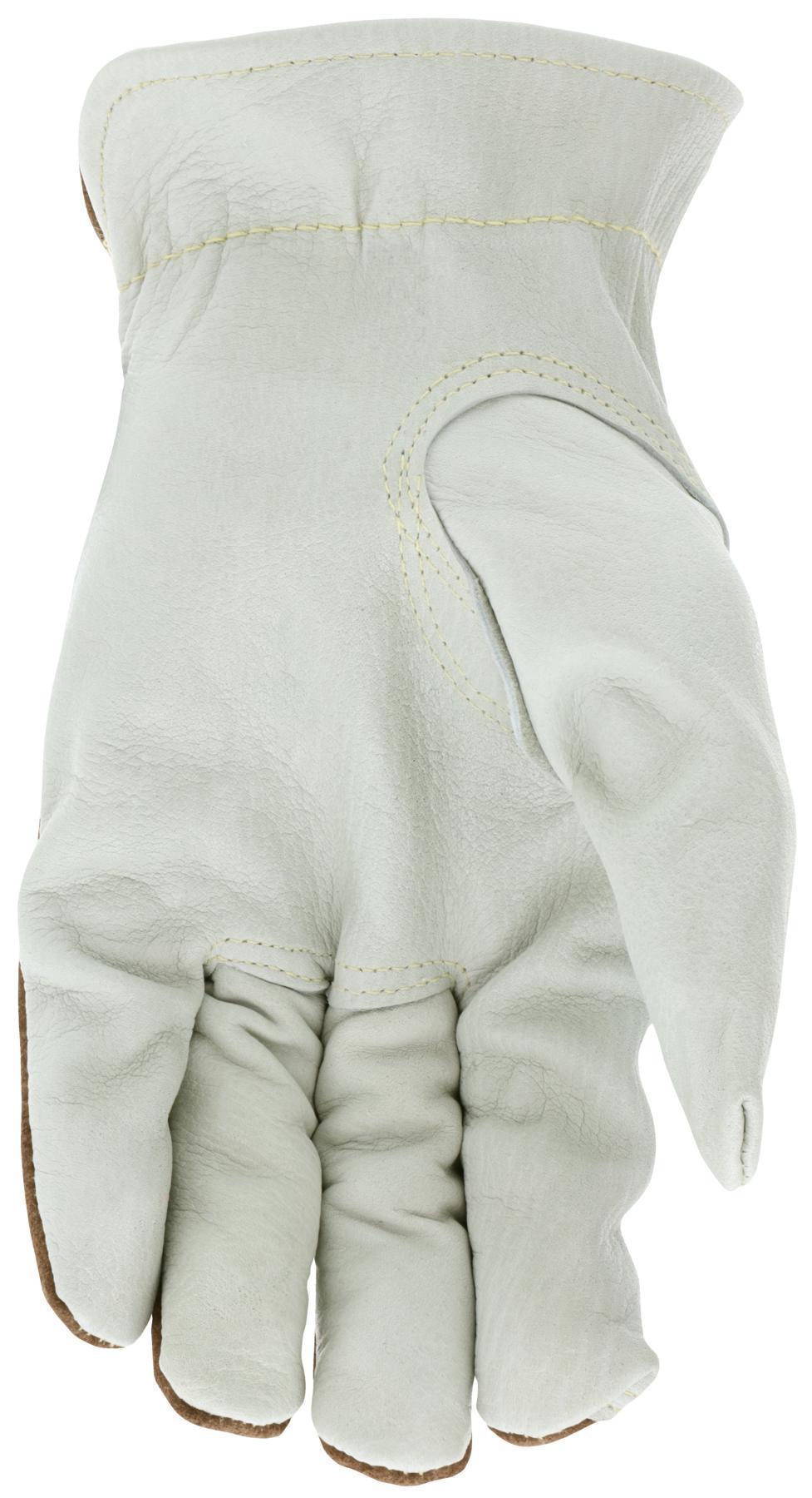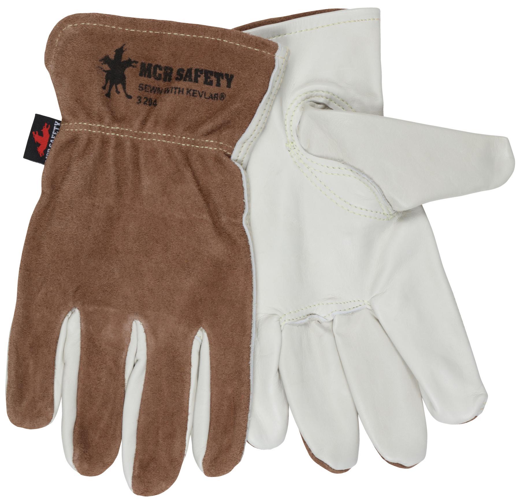 MCR Safety 3204M 3204 Premium Grade General Purpose Gloves, Driver, Gunn Cut/Keystone Thumb Style, M, Grain Cowhide Leather Palm, Kevlar® Thread/Leather, Beige, Slip-On Cuff, Resists: Abrasion, Unlined Lining