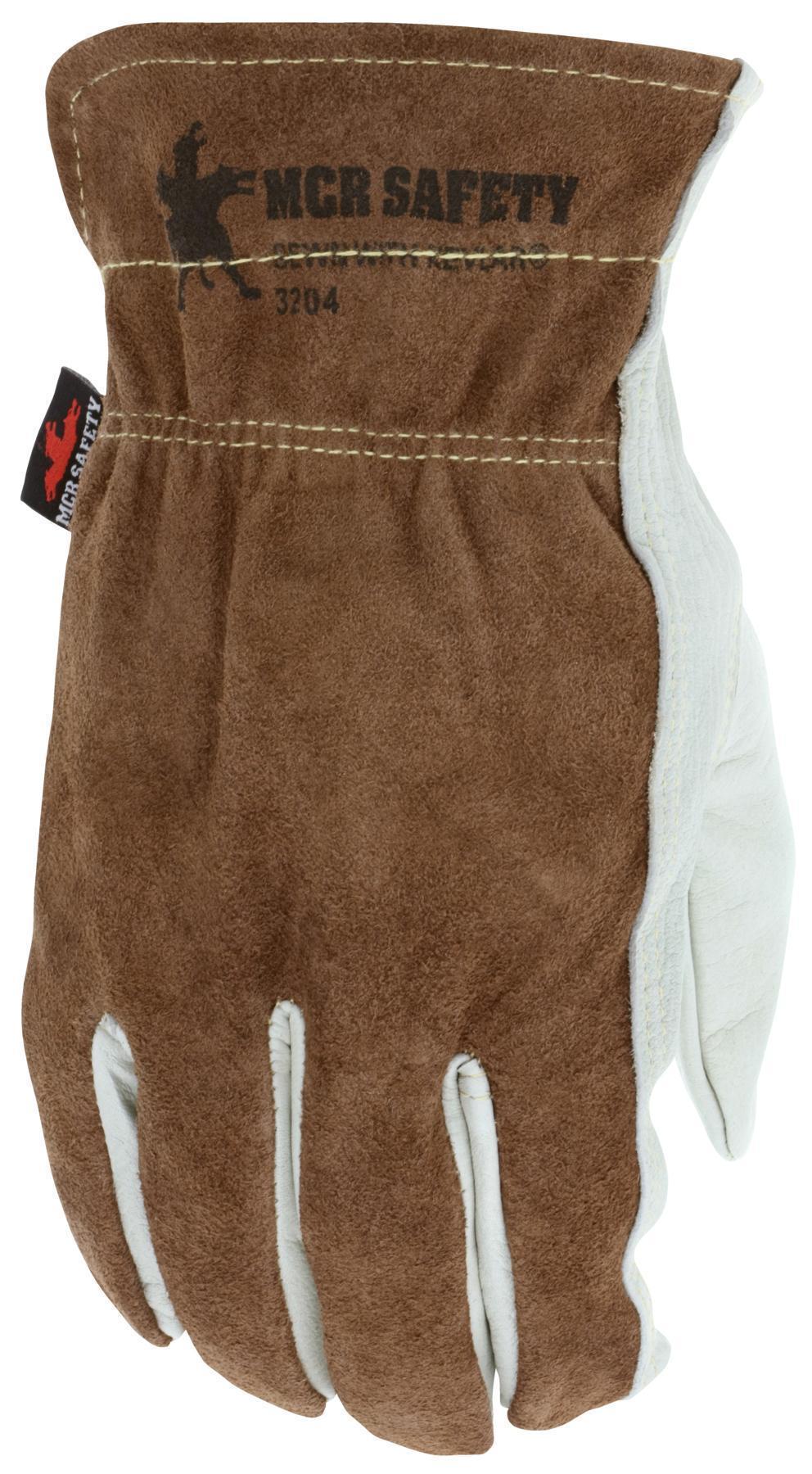 MCR Safety, 3204M, General Purpose Gloves, Premium Grade, Series: 3204, Driver Glove, M Size, Grain Cowhide Leather Palm, Kevlar® Thread/Leather, Beige, Gunn Cut/Keystone Thumb Style, Unlined Lining, Slip-On Cuff, Elastic/Shirred Closure, 9-1/4 in Length, Resists: Abrasion