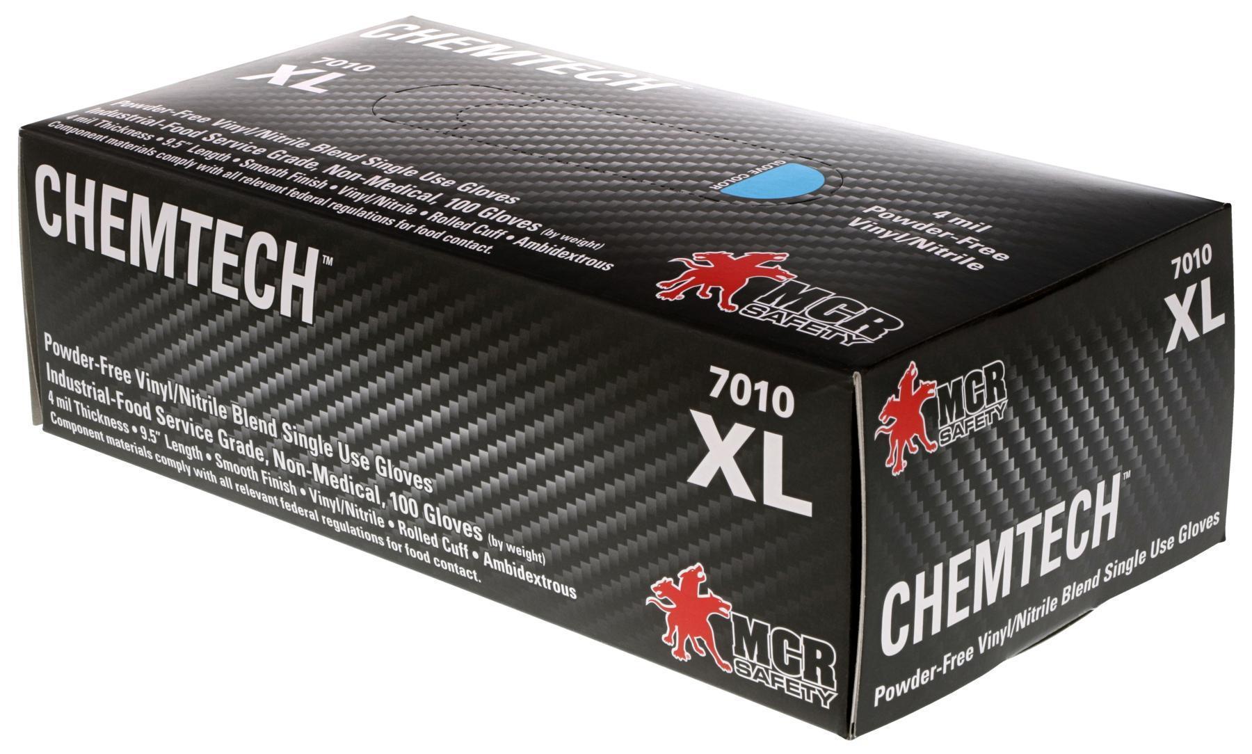 MCR Safety 7010L VitriShield™ 7010 Non-Sterile Disposable Gloves, L, Nitrile/Vinyl, Blue, 9.84 in L, Non-Powdered, Smooth, 4 mil THK, Application Type: Industrial Grade, Ambidextrous Hand