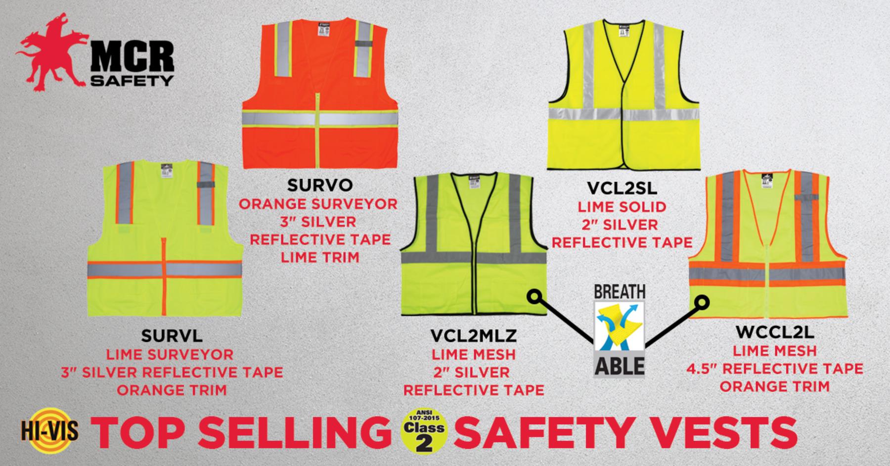 MCR Safety, SURVLS, Safety Vest, Surveyor Style, Series: Luminator®, Small Size, Fluorescent Lime, Polyester, Silver Stripe, Zipper Front Closure, 6 Pockets, ANSI Class: Class 2, Specifications Met: ANSI/ISEA 107-2020 Type R