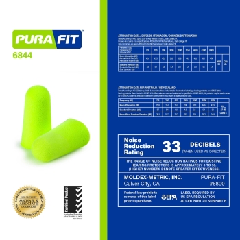 Moldex® 6844 Pura-Fit® PlugStation® Earplugs, 33 dB Noise Reduction, Tapered Shape, ANSI S3.19-1974, Disposable, Uncorded Design