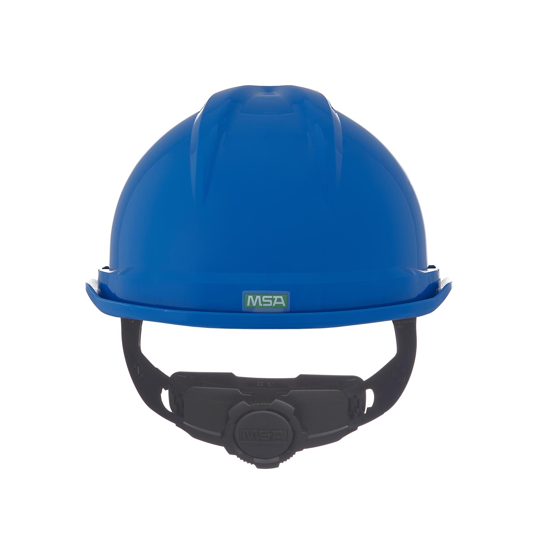 MSA V-Gard® Hard Hat, Front Brim Vented, Series: 500, Standard Size, Fits Minimum Hat Size: 6-1/2, Fits Maximum Hat Size: 8, Blue, Polyethylene, 4-Point Fas-Trac® III Suspension, ANSI Electrical Class Rating: Class C, ANSI Impact Rating: Type I, Slotted: Yes, Ratchet Adjustment