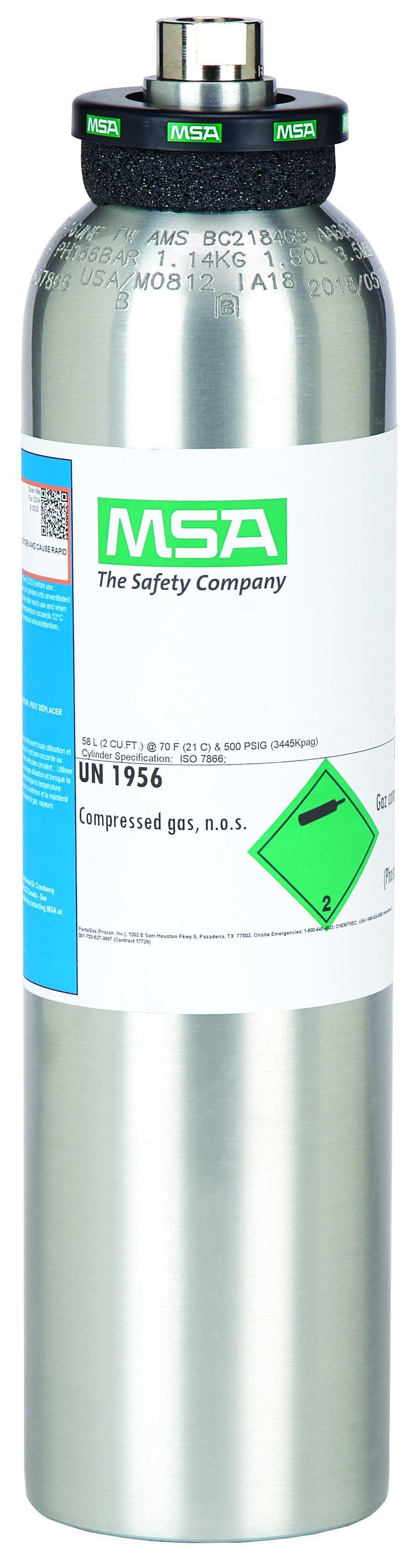 MSA 10153845 Calibration Testing Gas, Composition: Hydrogen Sulfide, Nitrogen, 58 L Cylinder Capacity, For Use With Gas Detectors