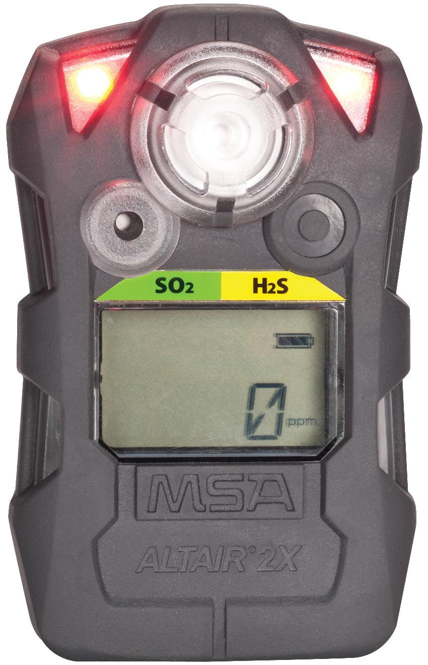 MSA Altair® 2XT Multi-Gas Detector, Sulfur Dioxide, Hydrogen Sulfide (Low Concentration) Gas, Alarm: Audible/Vibration/Visual, LCD Display, 0.1 ppm Resolution, Lithium Battery, IP67 Enclosure, Rubberized Armor Housing Material, 3-1/2 in L x 2-1/8 in W x 1-1/4 in D Dimensions