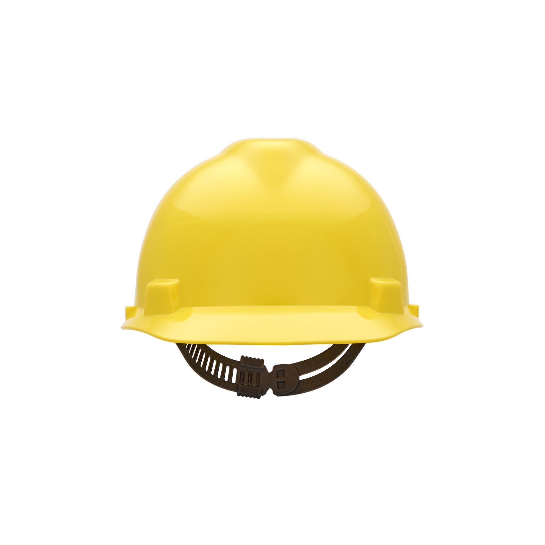 MSA V-Gard® Hard Hat, Front Brim, Standard Size, Fits Minimum Hat Size: 6-1/2, Fits Maximum Hat Size: 8, Yellow, Polyethylene, 4-Point Staz-On® Suspension, ANSI Electrical Class Rating: Class E, ANSI Impact Rating: Type I, Slotted: Yes, Pin Lock Adjustment