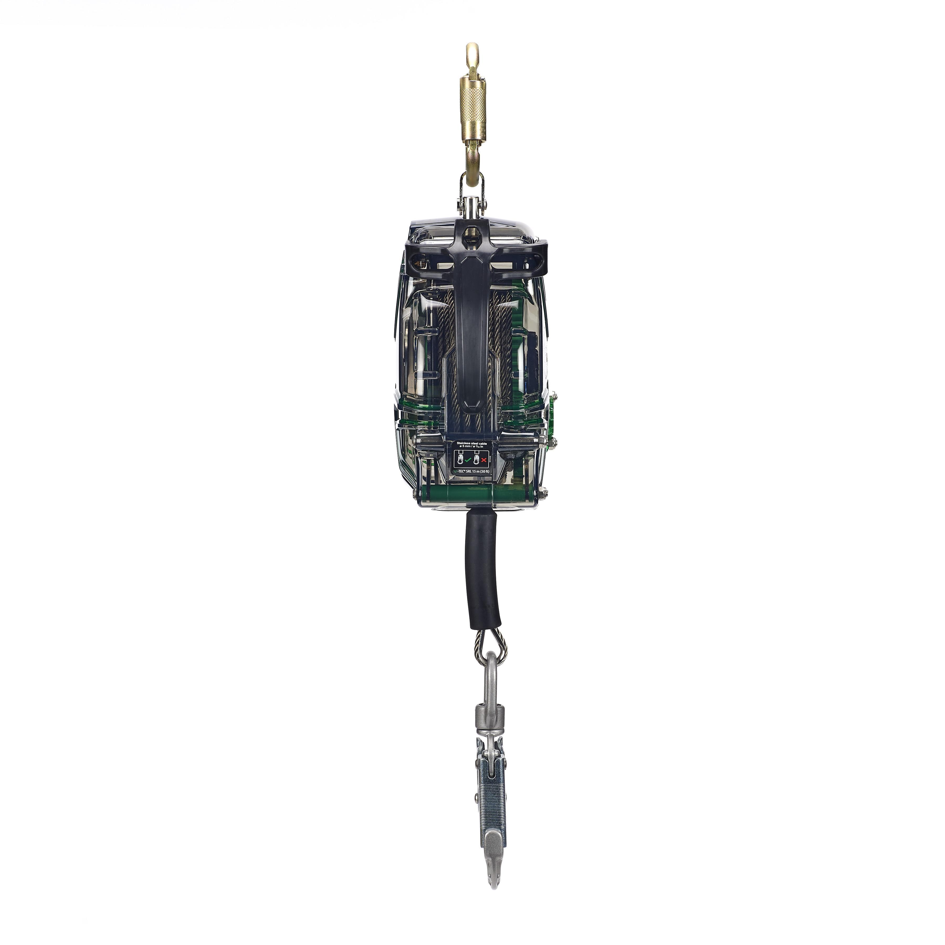 With premium stainless steel components and innovative engineering, the V-TEC™ self-retracting lifeline incorporates a precision made spring radial energy absorber that requires zero calibration or adjustment. The retraction dampening feature controls cable retraction speeds preventing pre-mature and accidental load indicator deployment.