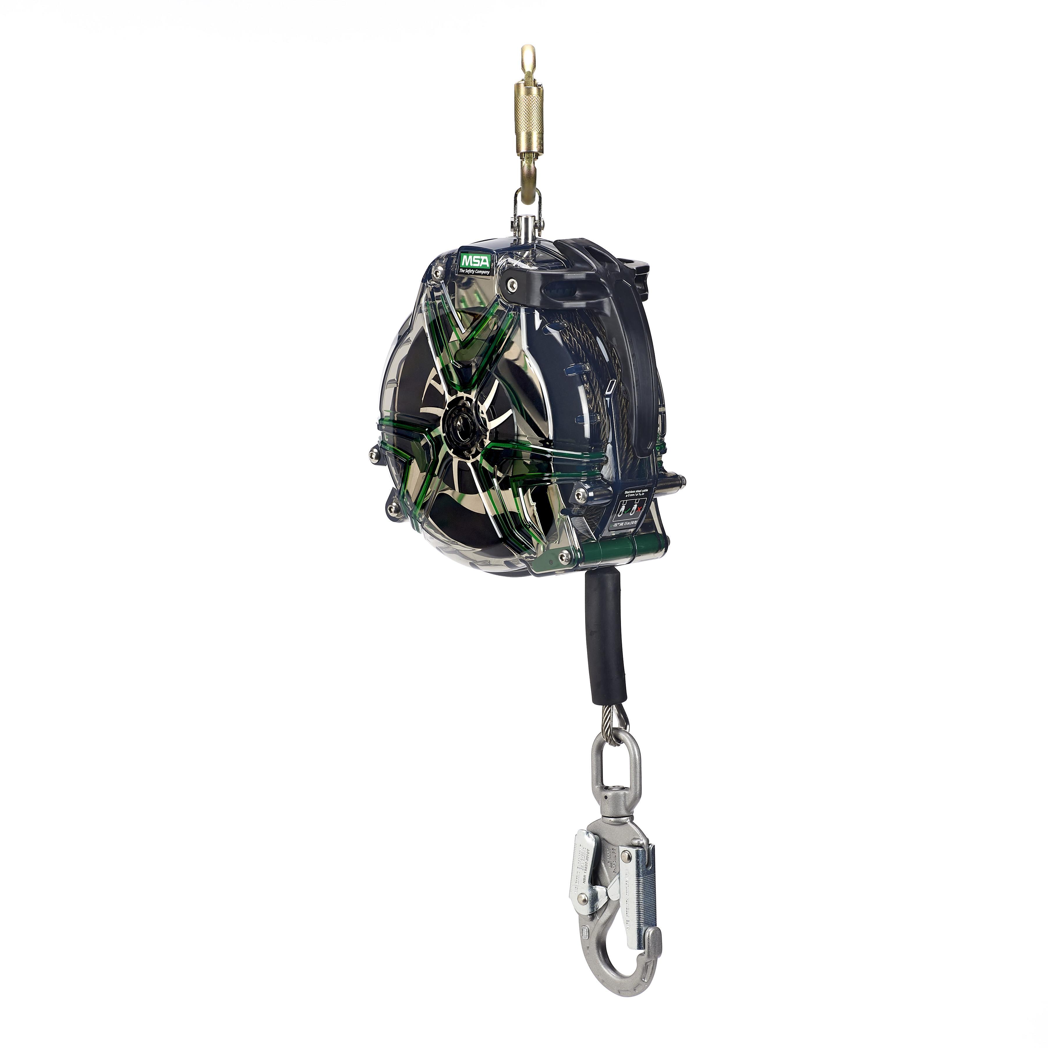 MSA V-TEC™ Self-Retracting Lifeline, Standard, Series: V-SERIES™, 130 to 310 lb Load, 30 ft Length, Galvanized Steel/Stainless Steel Line, Stainless Steel/Steel Hardware, Clear, Specifications Met: ANSI Z359.14 (Class B), CSA Z59.2.2, EN 360 2002, OSHA Compliant