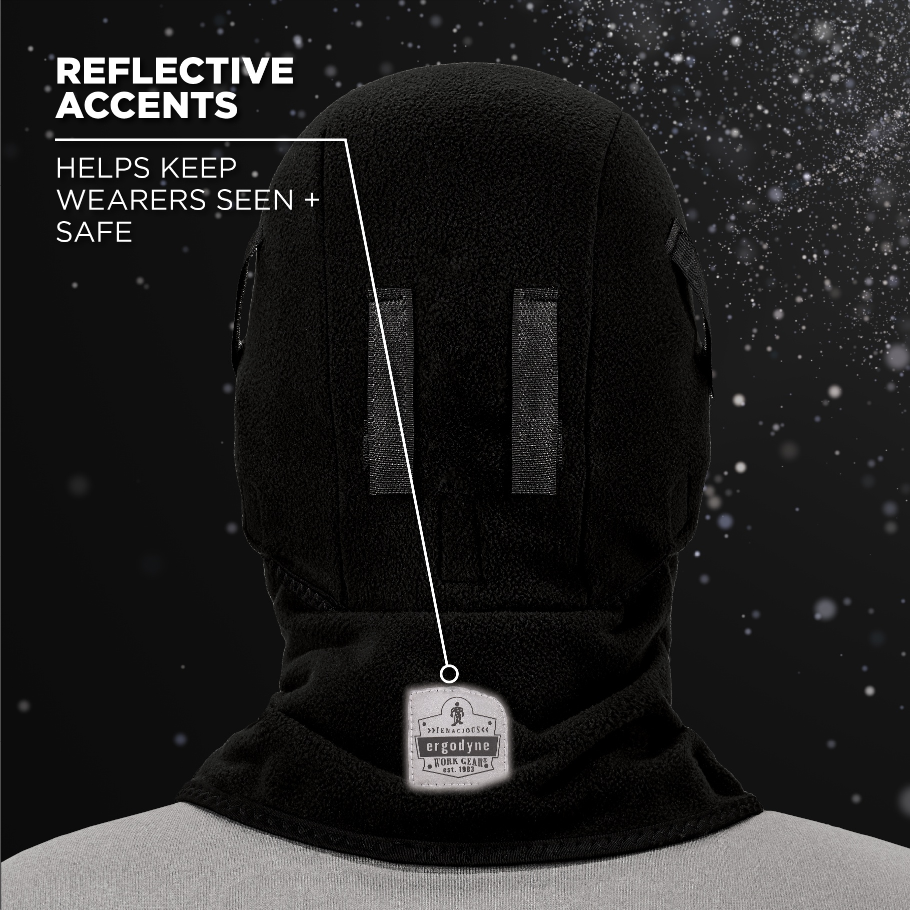 The longer length covers your face, nose, mouth and neck for protection against the wind and cold. Reflective accents offer visibility at night or in low-light conditions. Unique hook-and-loop attachments connect to your hard hat’s suspension system to keep it in place.