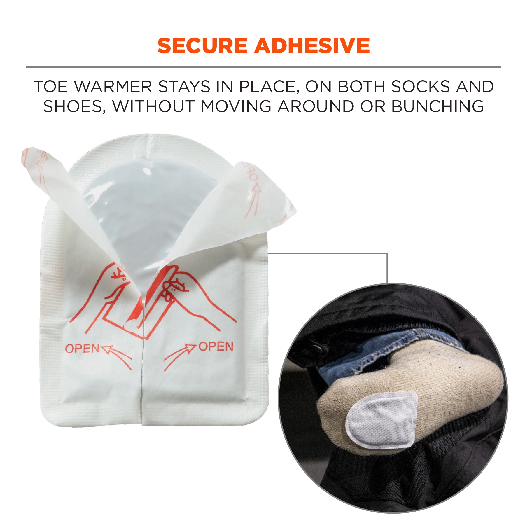 The N-Ferno 6992 Adhesive Toe Warmers offer long lasting heat, delivering up to 7 hours of warmth. Specifically designed as a heating pad for toes, they protect part of the body most susceptible to frostbite and hypothermia. As a wearable heating pad, they’re perfect for keeping toes warm for long hours during work or play. Each box includes 40 individually sealed pairs of warmers. HOW TO ACTIVATE To activate, simply open the pack. The all-natural ingredients will begin to heat up as soon as they’re exposed to oxygen—no batteries required. Shake the pack to speed up the warming process. These toe warmers are designed to adhere to the insole of the shoe or on the sock near the toes. Once applied, the pack is safe to wear inside work boots or shoes. Packs are not reusable and should be disposed of after each use (up to 7 hours). Non-toxic, these heated toe warmers are made using all-natural ingredients. Ideal for cold environment work such as construction, manufacturing or delivery work, as well as outdoor activities like walking, skiing or fishing.