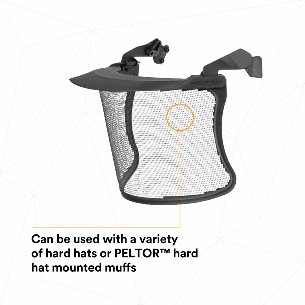 Peltor™ 7000103815 Faceshield, For Use With 3M Peltor Muffs, Black Visor, Steel Mesh Visor, 6.5 in H 5.5 in W, ANSI Z87.1