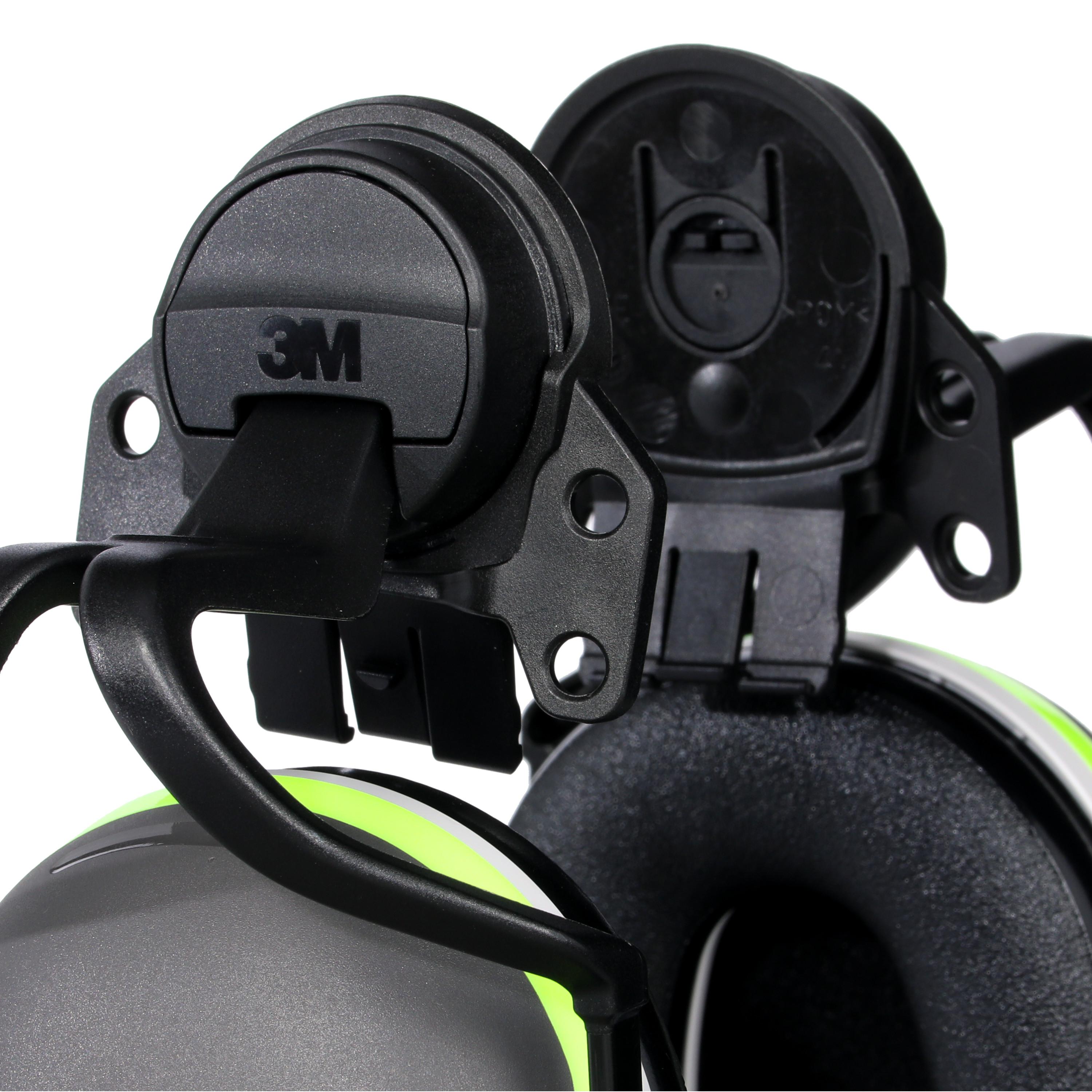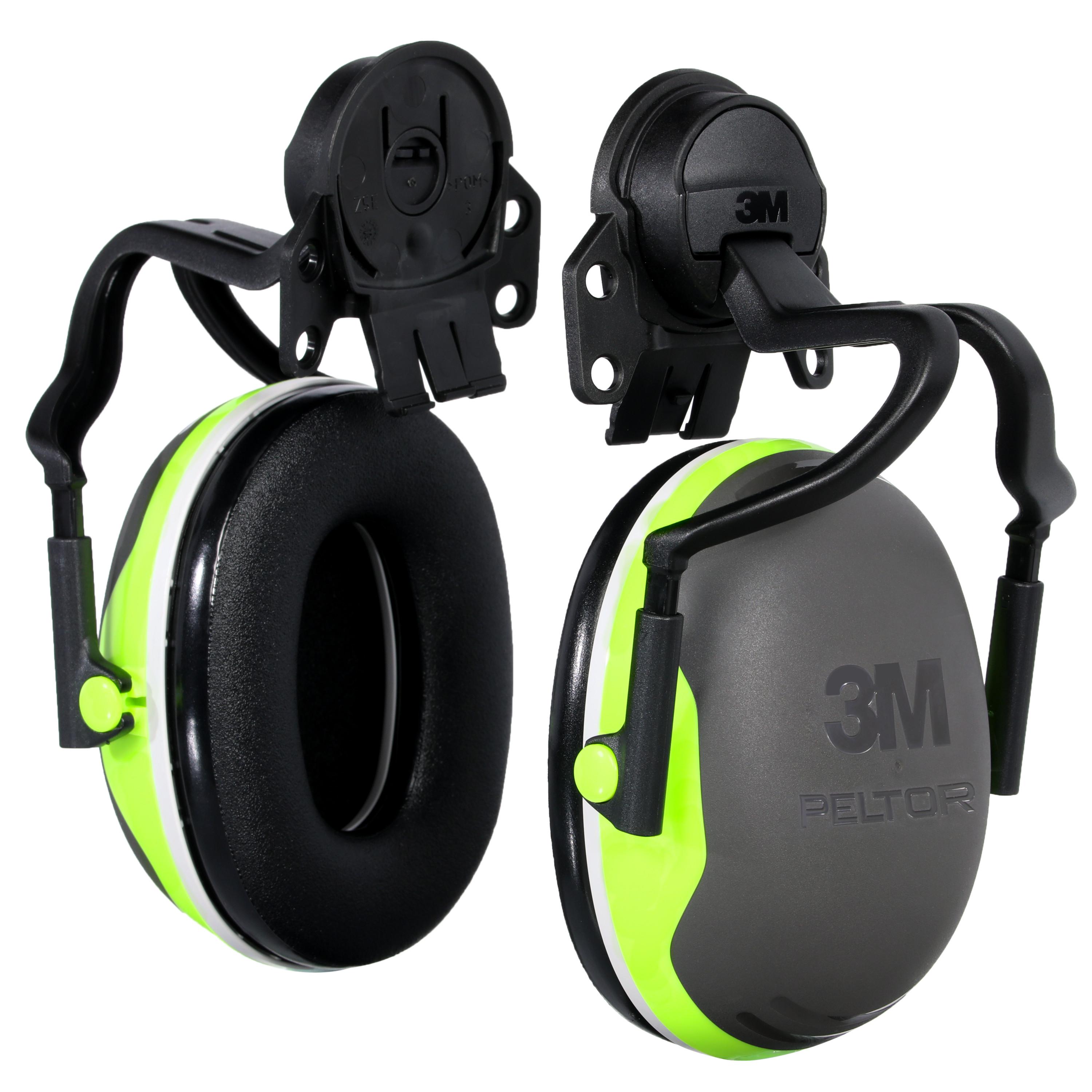 3M™ Peltor™ X4P5E hard hat attached earmuff. The X series earmuffs are 3M™'s latest advancement in hearing conservation. New advanced design allow for use with full brim hard hats. New technologies in comfort, design and protection all come together
