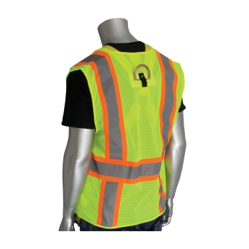 PIP® 302-0600D-LY/XL 2-Tone Safety Access Vest With "D" Ring Access, XL, Hi-Viz Lime Yellow, Polyester, Zipper Closure, 2 Pockets, ANSI Class: Class 2, Specifications Met: ANSI 107 Type R