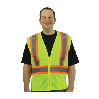 PIP® Safety Access Vest, 2-Tone, Series: 302-0600D, XL Size, Hi-Viz Lime Yellow, Polyester, 52 in Chest, 28 in Length, Zipper Closure, 2 Pockets, ANSI Class: Class 2, Specifications Met: ANSI 107 Type R