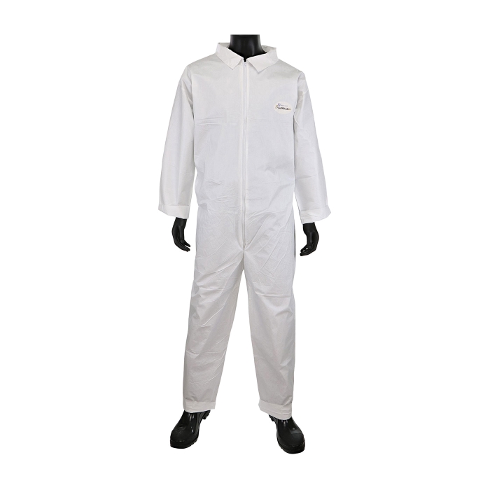 PIP® Chemical-Resistant Coverall, Series: 3600 BA, 4XL Size, White, Microporous Fabric, 33.1 in Chest, 32.7 in Inseam Length, Front Zipper Closure, Resists: Dry Particulates and Liquid Sprays