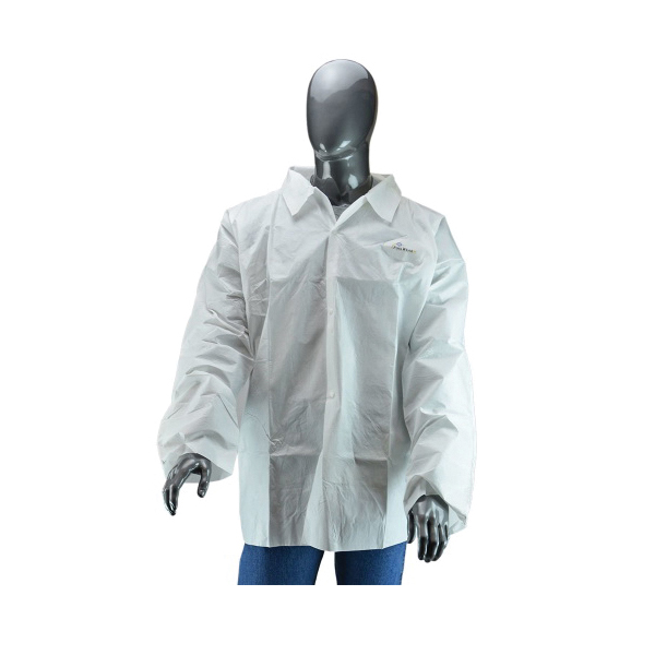 PIP® Protective Shirt, Water Resistant, Series: 3617 BA, XL Size, White, Microporous/Polyethylene/Polypropylene, 33 in Length, Front Snap Closure