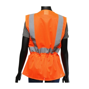 PIP® Safety Vest, Series: 47208, Women's, L/XL, Hi-Viz Orange, Polyester Mesh, Reflective Silver Stripe, 28-1/2 in Length, Hook and Loop Closure, 2 Pockets, ANSI Class: Class 2, ANSI/ISEA 107-2015 Type R Specifications Met