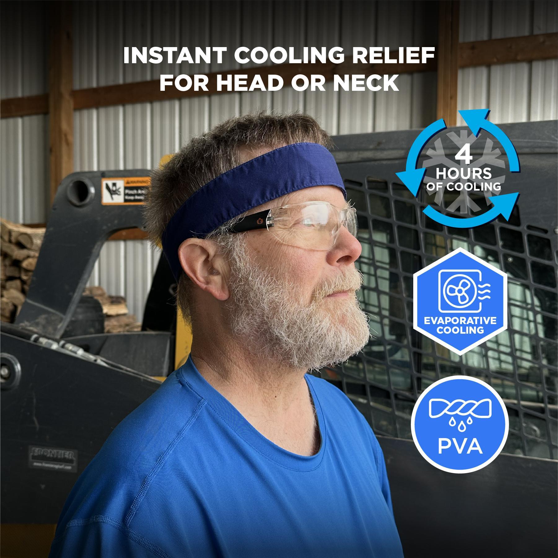 Chill-Its® Cooling Bandana, Evaporative, Series: 6705CT, Universal, Blue, Polyvinyl Alcohol, Solid Pattern, 1 min Soaking, Hook and Loop Closure