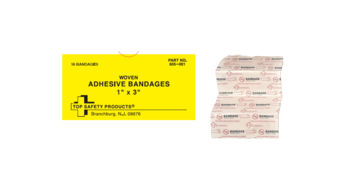 TOP SAFETY PRODUCTS® Bandage, Woven, 3 in Length, 1 in Width, Box Package Type