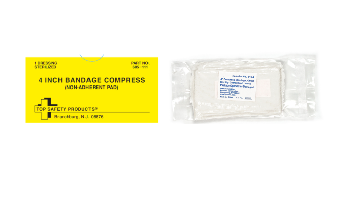 TOP SAFETY PRODUCTS® Bandage, Compress Non-Adhesive, 4 in Length, Box Package Type