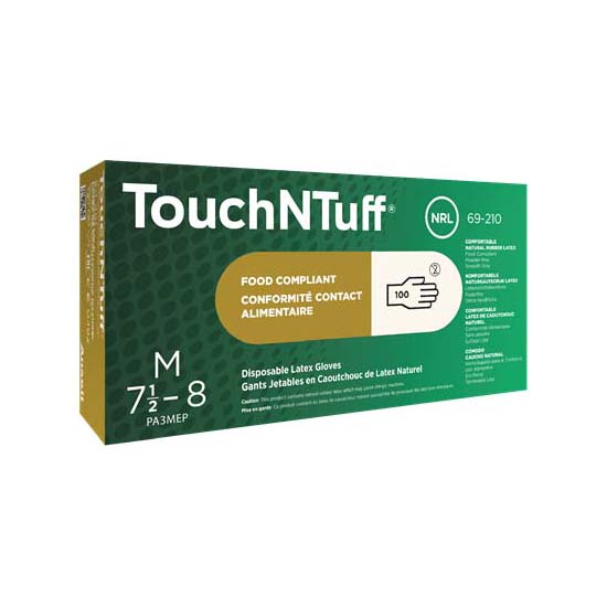 Made of natural rubber latex, TouchNTuff® 69-210 is a thin mil latex glove with enhanced tactile sensitivity. Lightly powdered, the glove absorbs moisture and offers easy donning and doffing.