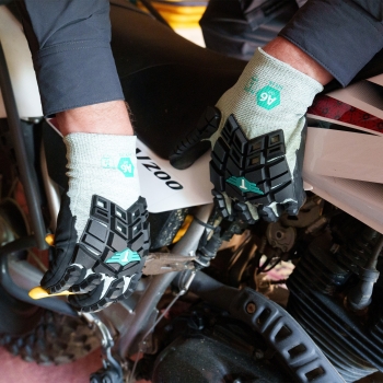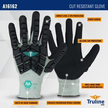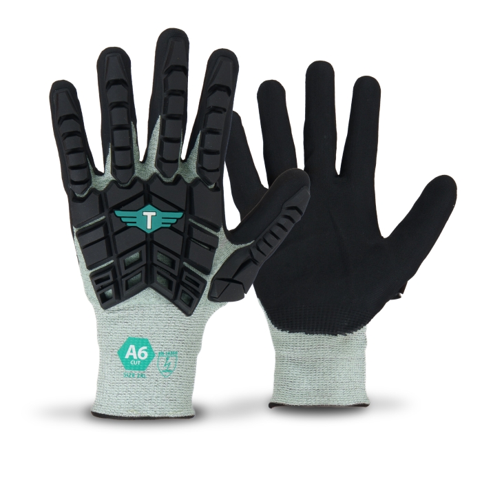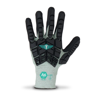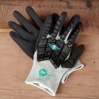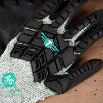 The ToughSkin 617 offers maximum dexterity and comfort. A Microfoam Nitrile palm coating offers excellent wet and dry grip while an added reinforced thumb patch adds extra protection in the critical wear area. Touch screen compliant and a sustainable shell made from recycled plastic bottles. ESD compliant shell. Available with or without TPR level 2 back of hand protection.