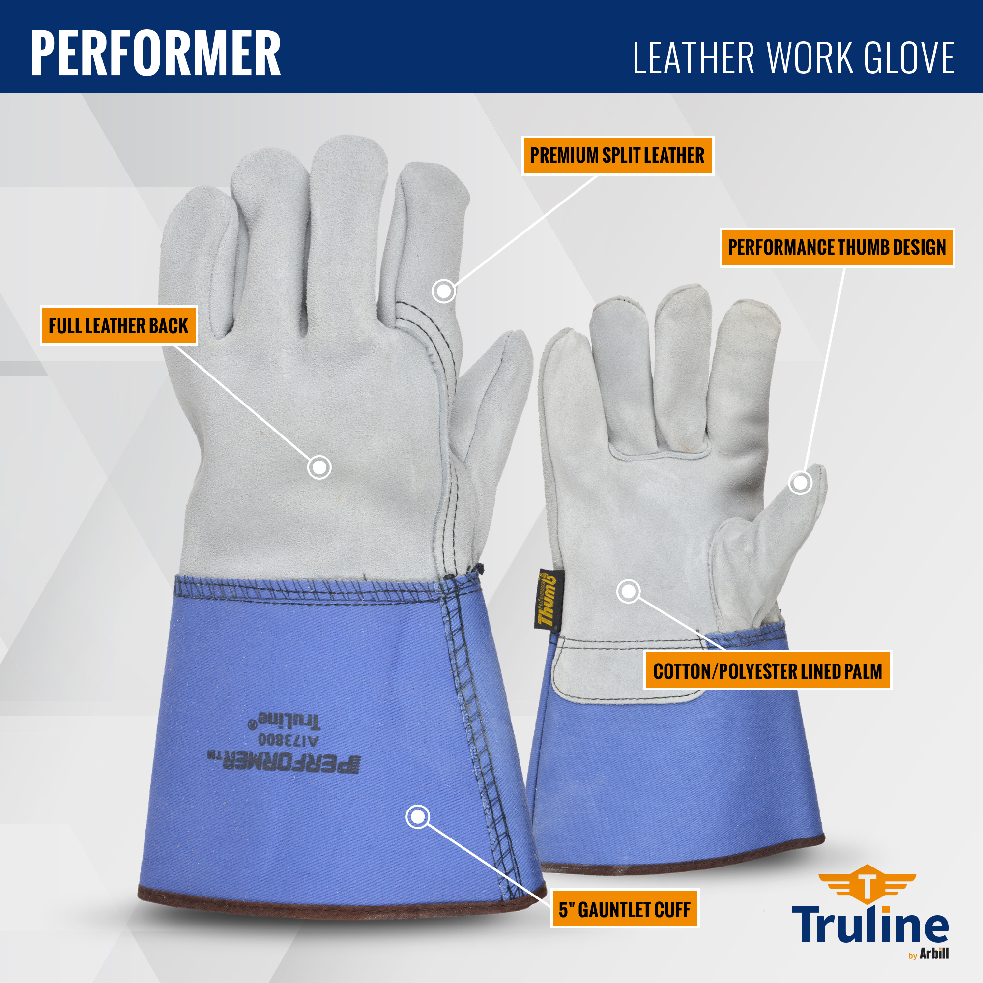 Truline Gladiator Performer Full Leather Work Gloves, 5" Bell Cuff, Size L