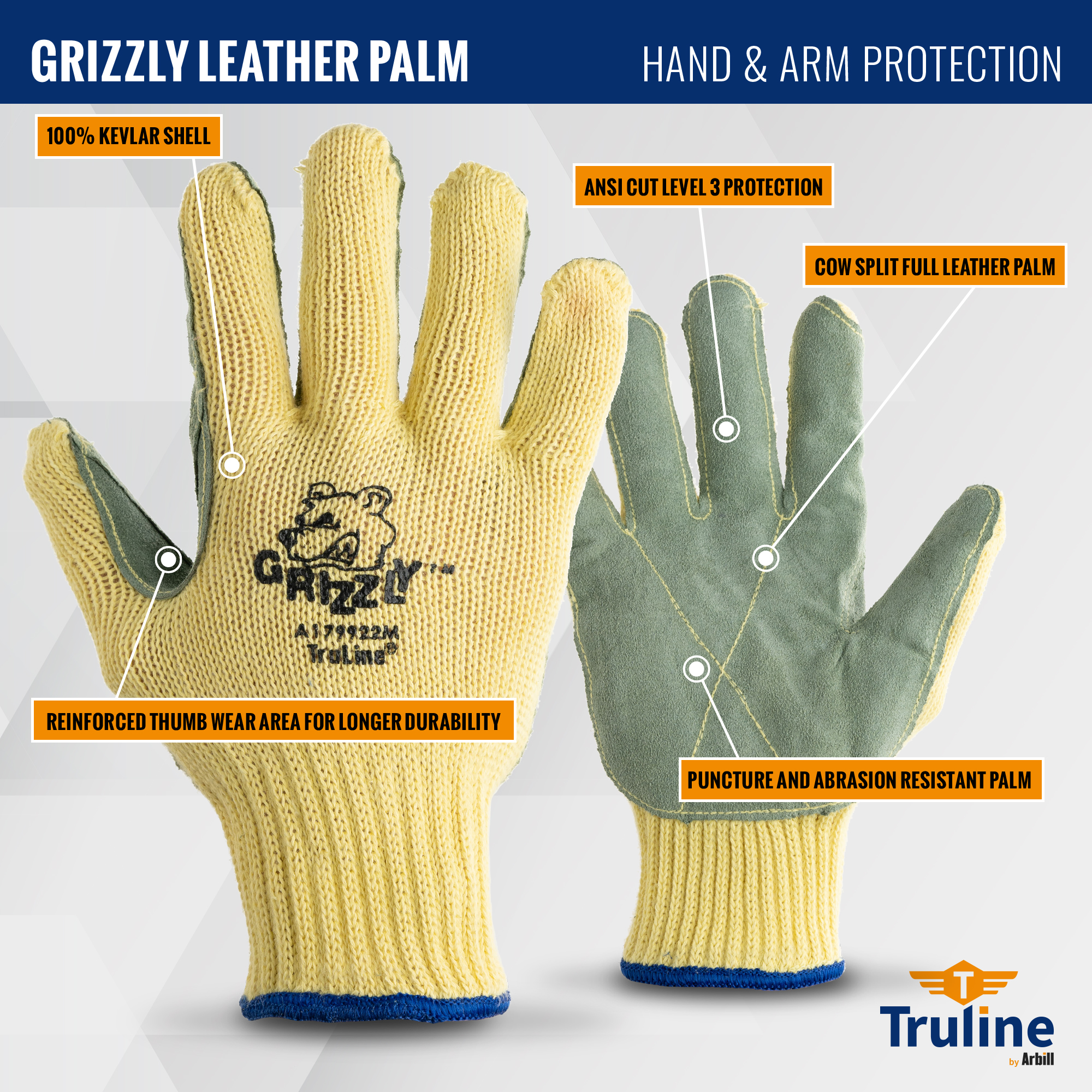 The Grizzly™ 310 is a tough and durable seamless 100% Kevlar® shell with full leather on the palm, fingers and thumb. Reinforced thumb-wear area for longer life. Choose this glove for its superior cut and puncture-resistance, secure grip and excellent abrasion-resistance. Cut Level: 3.